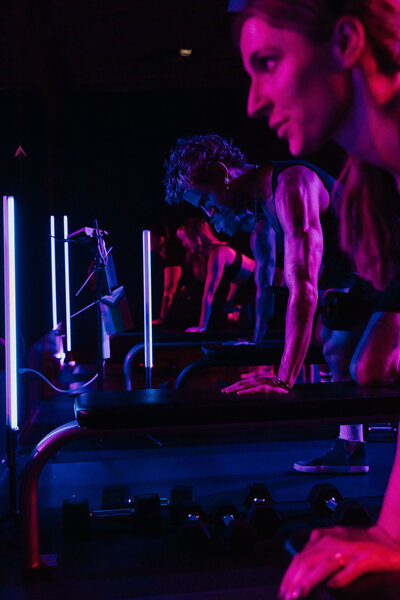 This FULL BODY class uses dumbbells, benches, and bands to deliver a strength and rythym based high intensity workout that ends with a 5 minute meditation leaving your mind, body, and soul feeling grounded & strong.